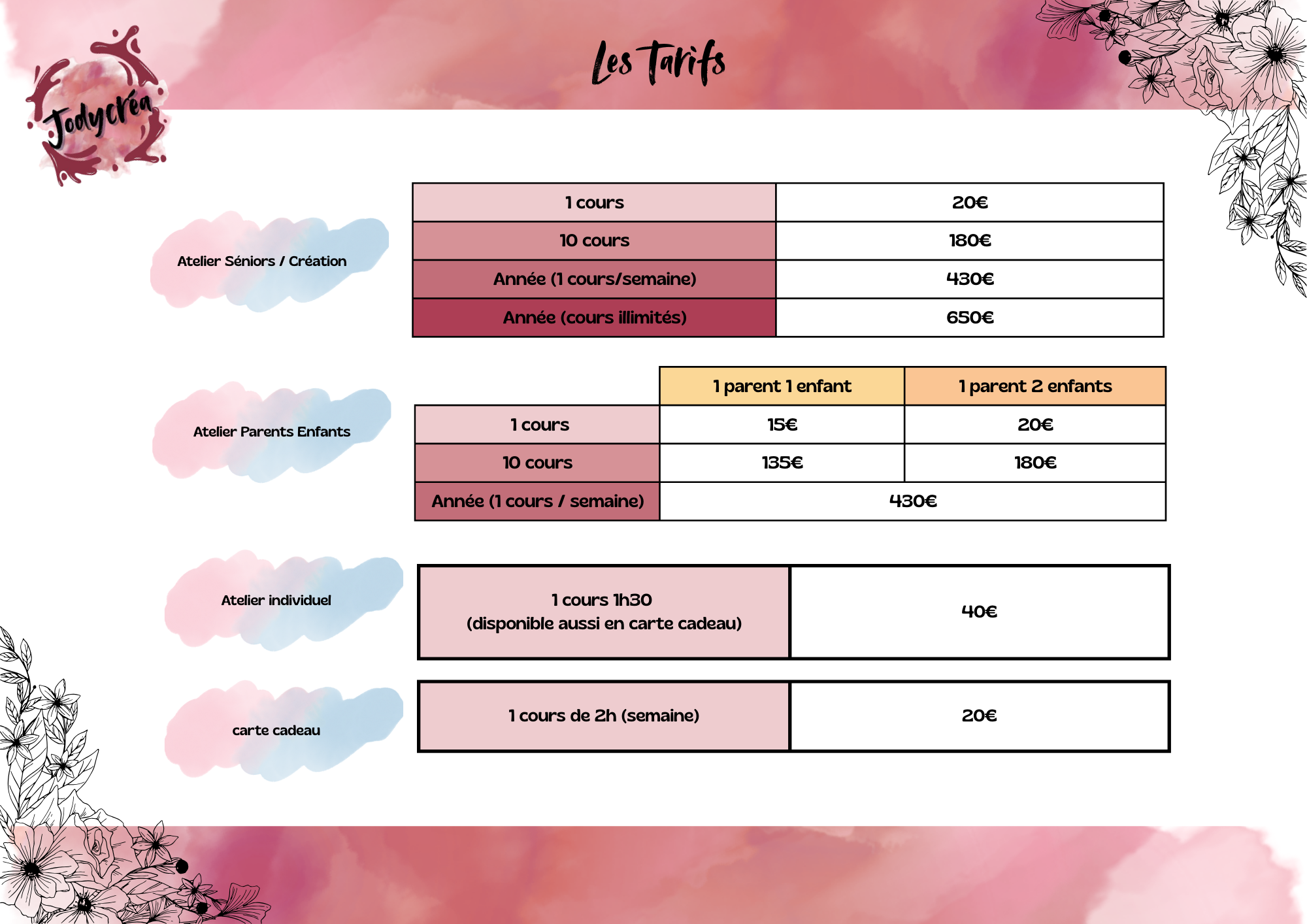 - Les ateliers durant les vacances scolaires ne sont donc pas compris.