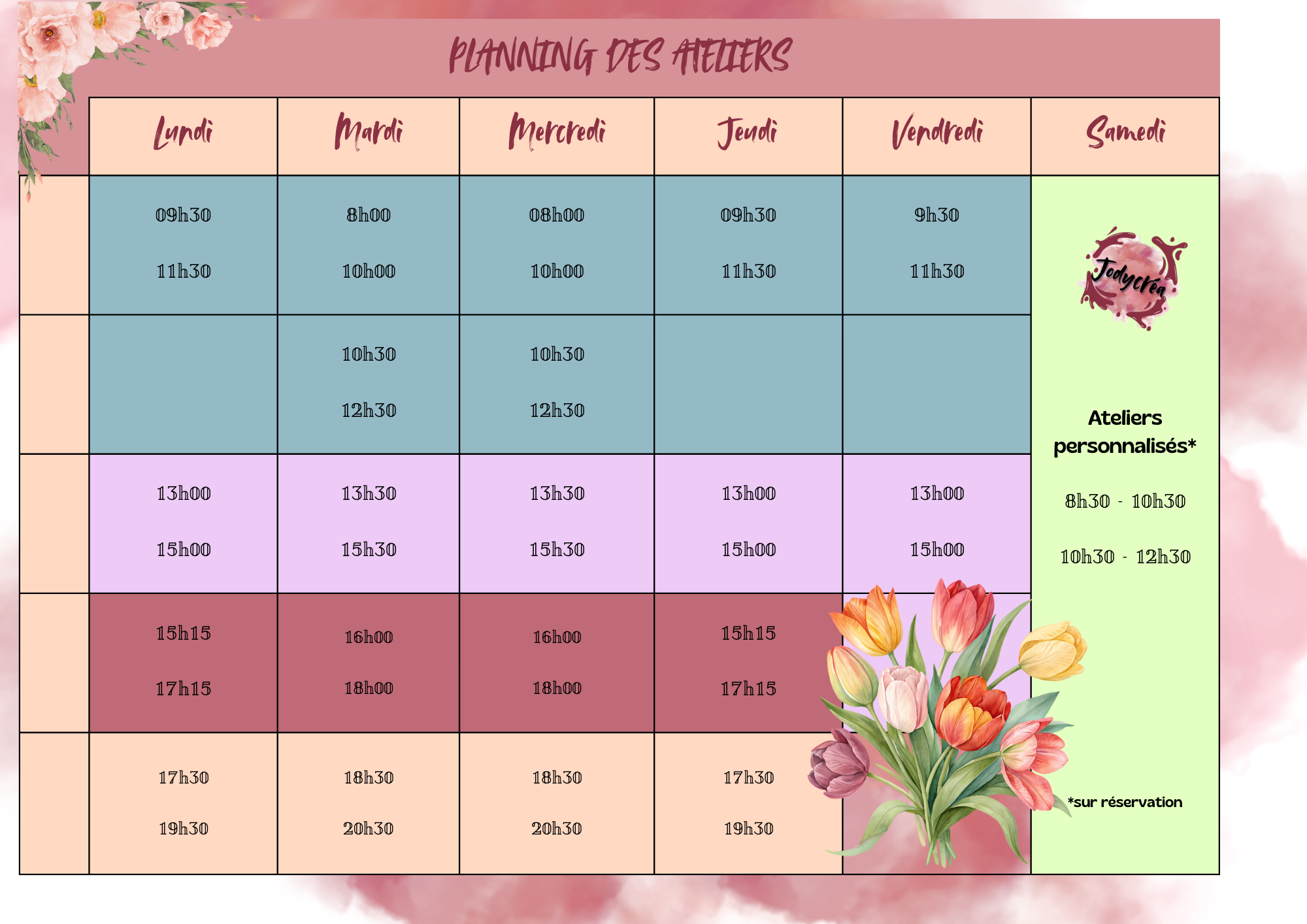 - l’atelier propose des horaires fixes sur les semaines scolaires